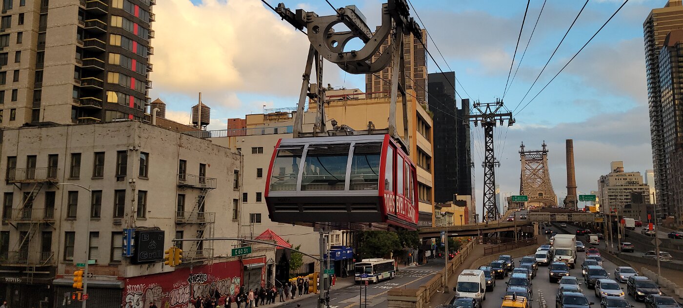 Seventh and last day, went back to Roosevelt Island for a longer tour. Is 2 miles long and over 10,000 people live there, per 2020 census. Cable Car has great views too, plus interesting angles? We saw various sidewalk stores and more LED wall signs. One more store for Mary, then got our last slice of New York pizza, before off to the airport to fly home.
