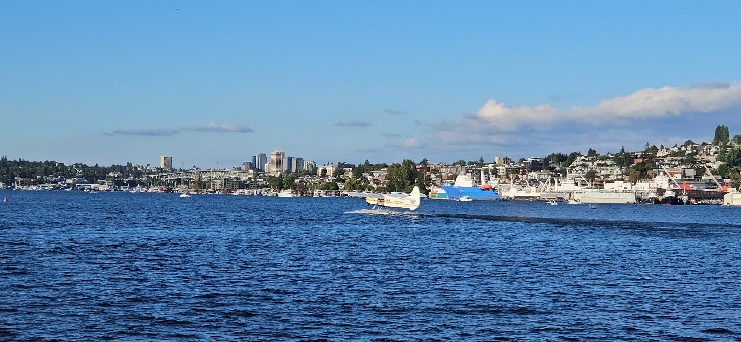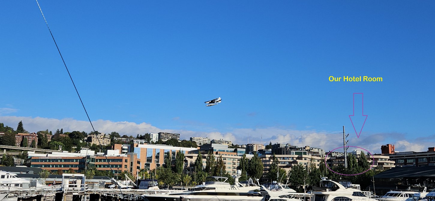 We flew out of San Antonio early to arrive in Seattle by noon. Took the Airport tram to the Lite Rail, and rode in to Seattle, then Uber to the hotel. Checking in early got us a nicer room on 6th floor with large patio, overlooking Lake Union. We walked around the boat docks and found a Native boat being carved. Also found a Sea Plane terminal nearby, with planes landing and taking off every 20 to 45 minutes. Figured out the Lite Rail passing the hotel was a point-to-point run going to downtown, so we rode some to sightsee.