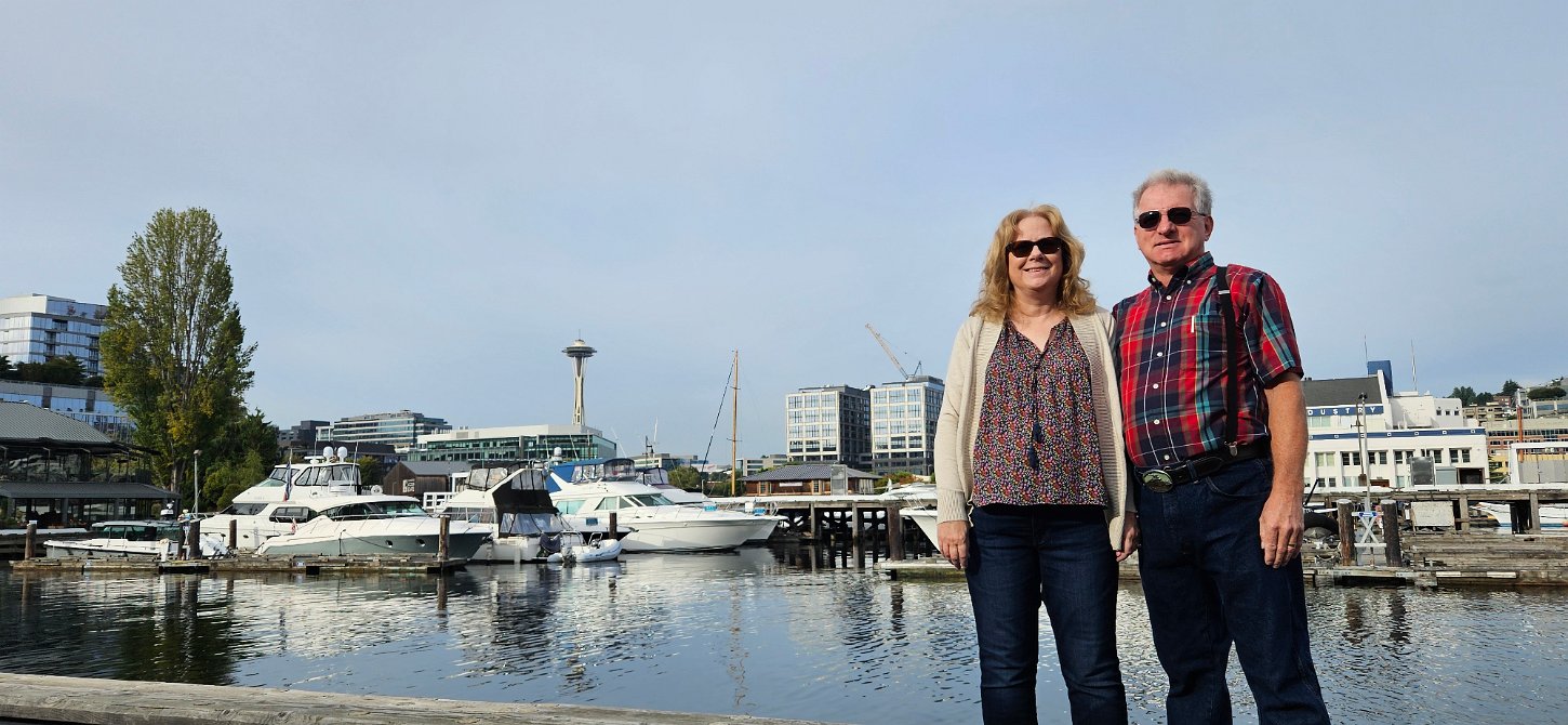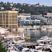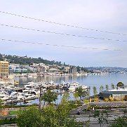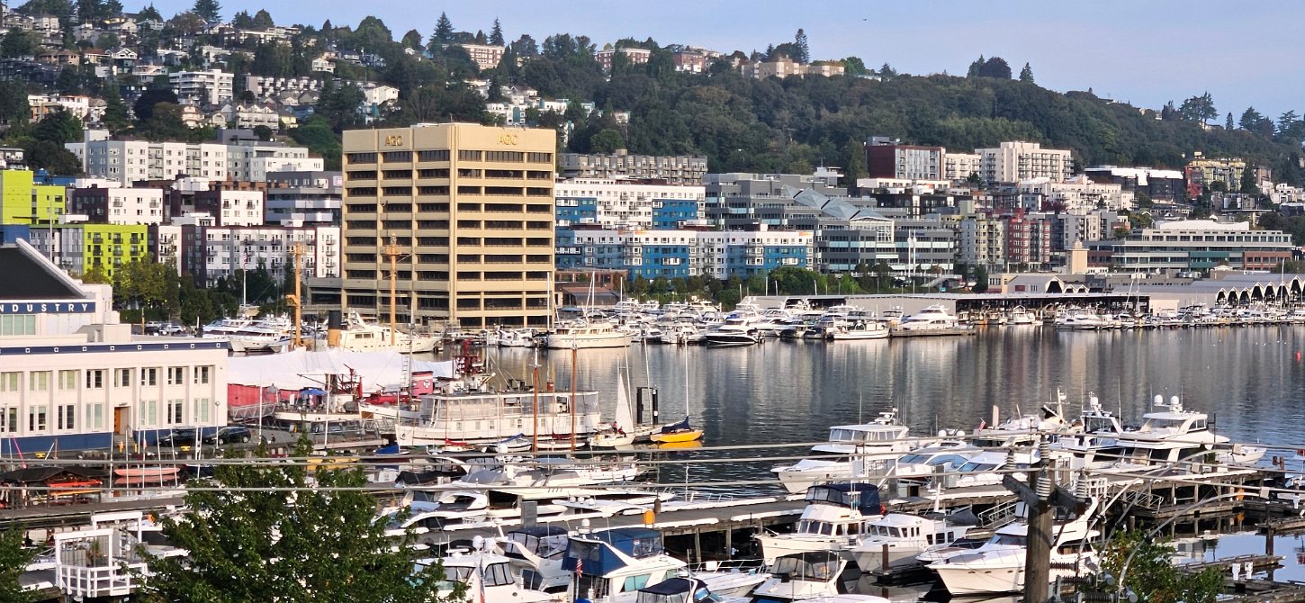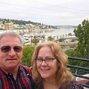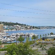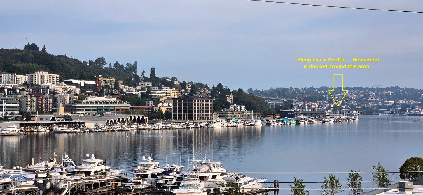 Our last day in Seattle, final views of Lake Union from our rooms patio view, and breakfast in the hotel courtyard again. We walked around the boat docks once more, watched some Sea Planes land and take off. The sun sorta came out even for a clear day. Last photos, note the Lite Rail tracks merge, past our hotel, so the unit can reverse and go the other way, via other track.