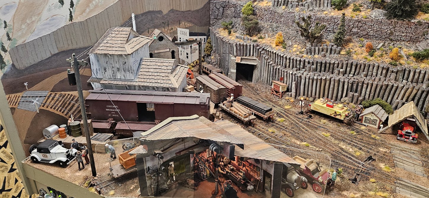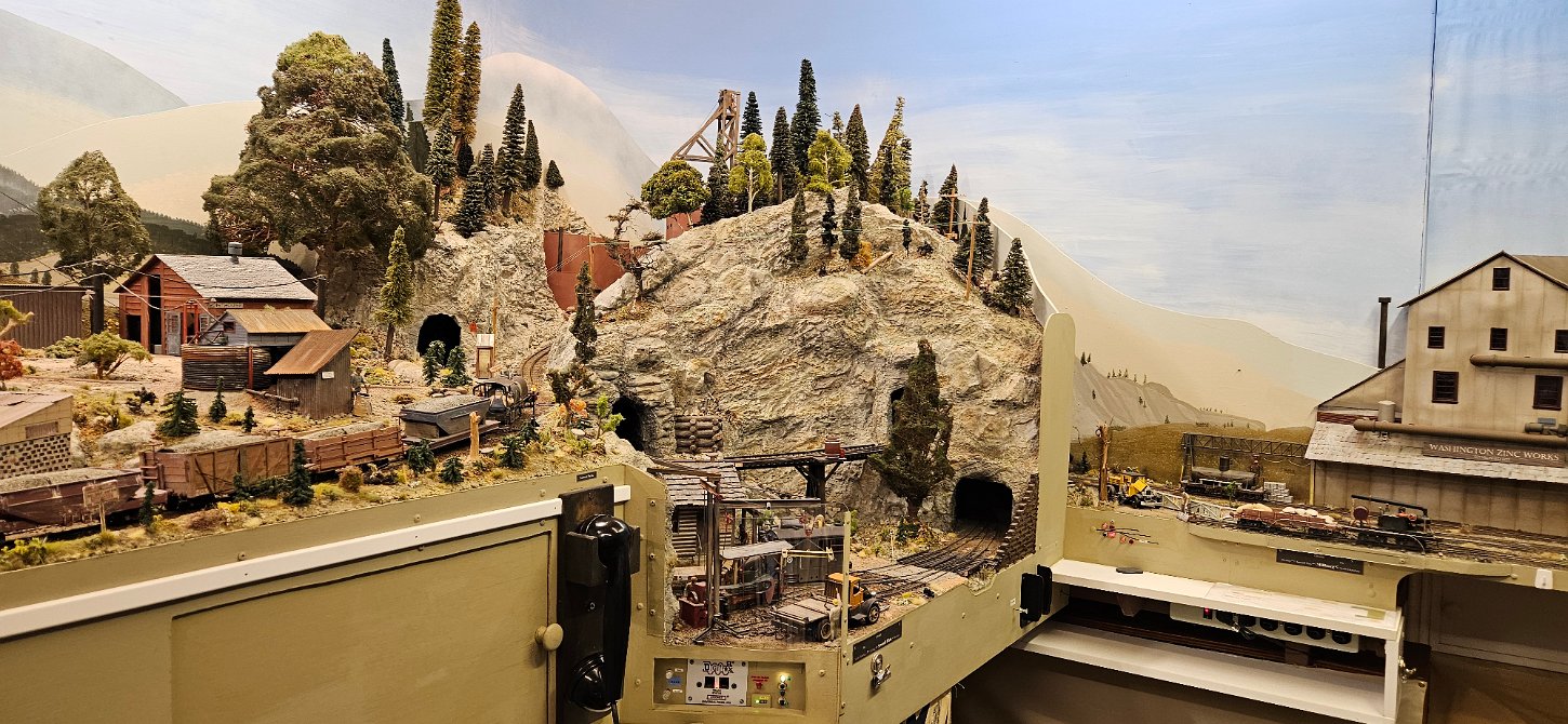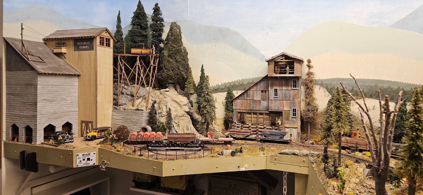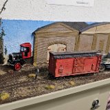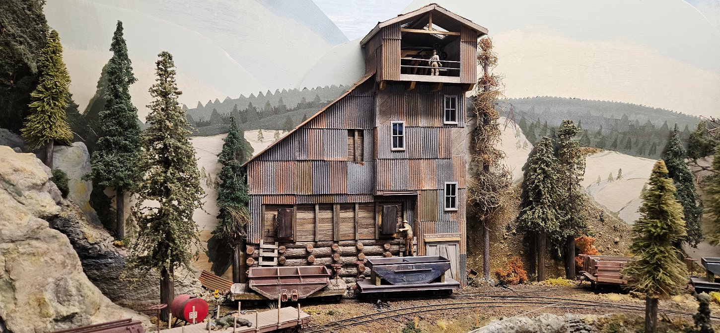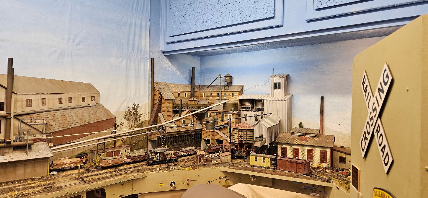 In the morning of Day 4, we visited Greg Wright's 1/32n20 model railroad, southwest of Tacoma. Greg scratch builds the buildings and rolling stock in 1/32 scale (this is larger than O scale, smaller than G scale). He freelances a 20inch gauge mining railway, as 20 inches scales out to HO / On30 gauge track, allowing him to use HO and On30 wheelsets and drives, and at times, some track and switches when not hand laid. He also gave us a tour of see his 'garden railroad'. All buildings and trains were put away in storage for the year, so we saw the railway.