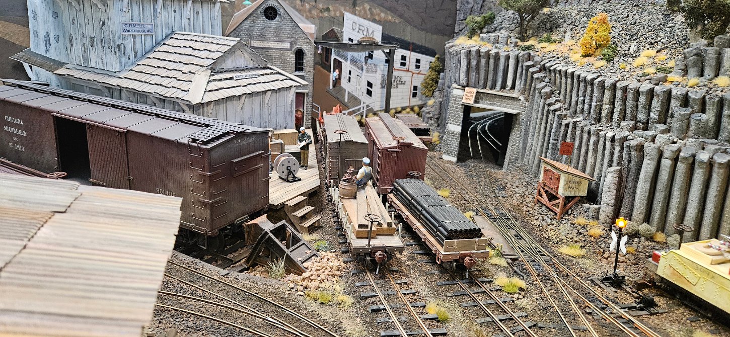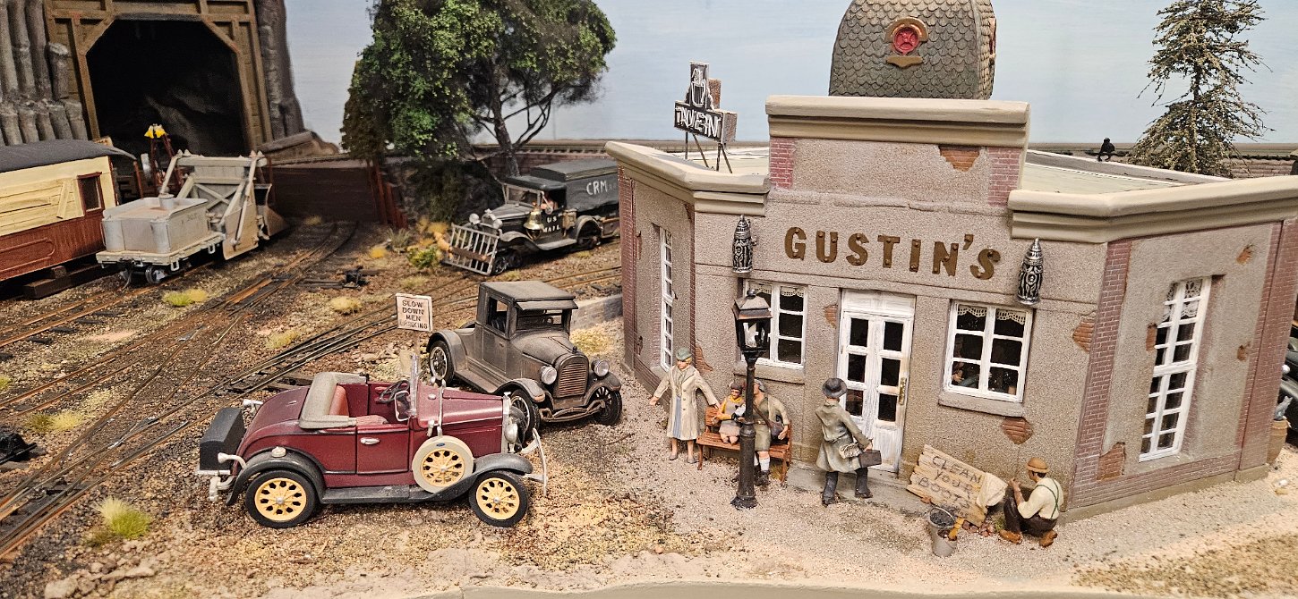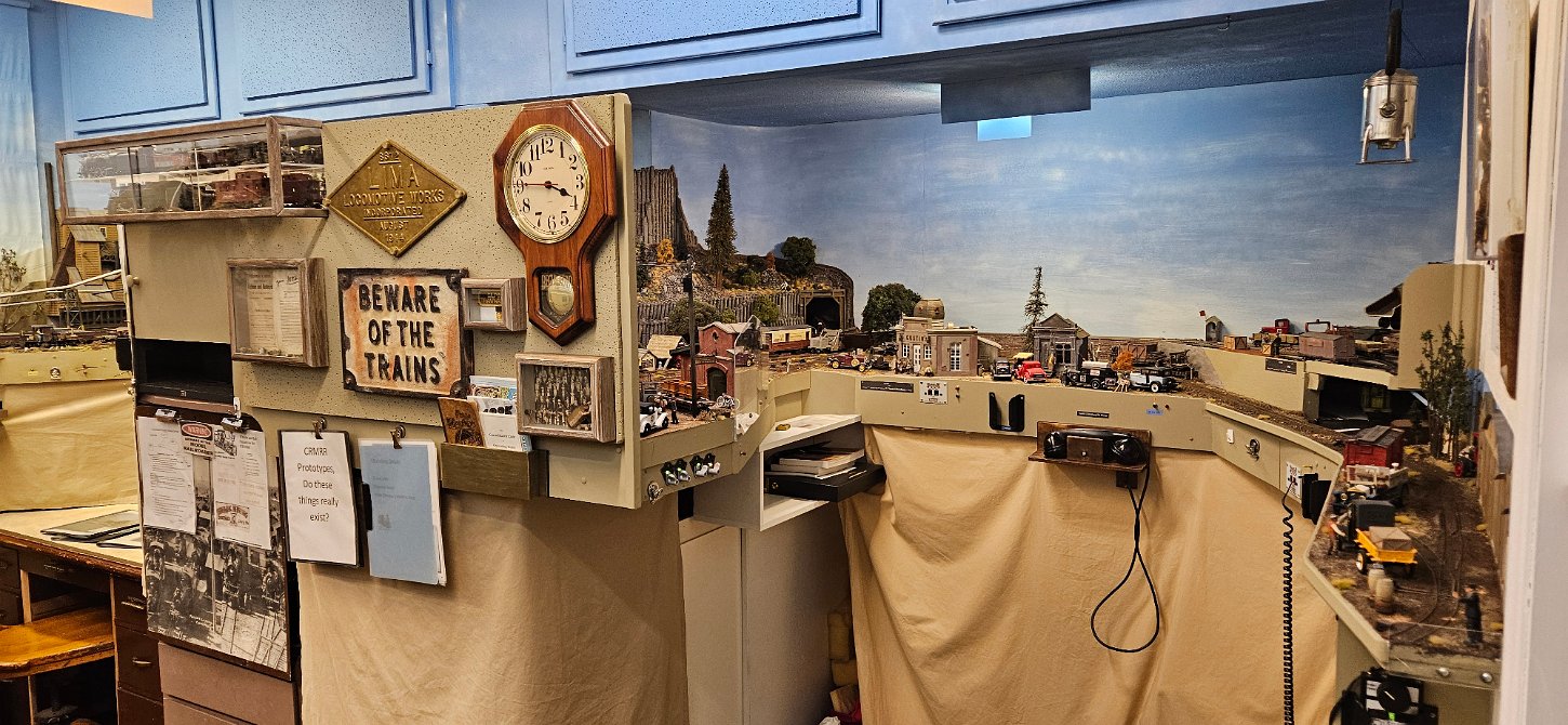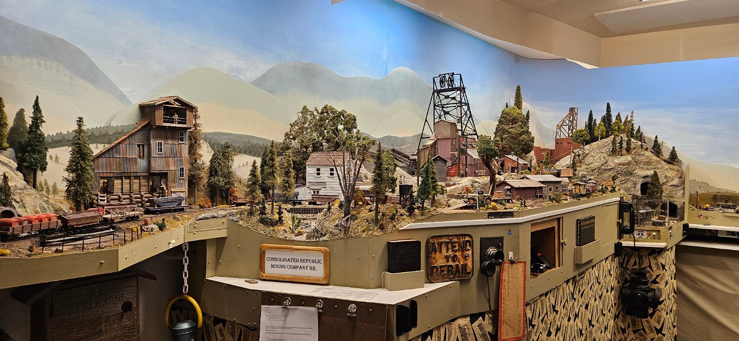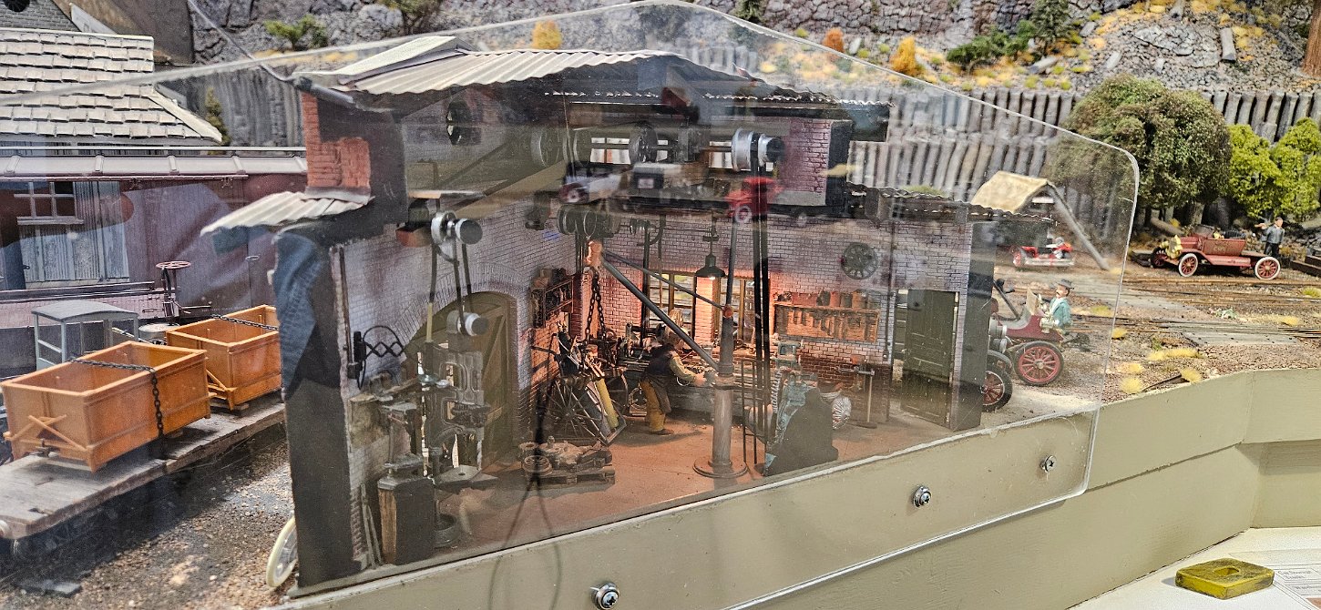 In the morning of Day 4, we visited Greg Wright's 1/32n20 model railroad, southwest of Tacoma. Greg scratch builds the buildings and rolling stock in 1/32 scale (this is larger than O scale, smaller than G scale). He freelances a 20inch gauge mining railway, as 20 inches scales out to HO / On30 gauge track, allowing him to use HO and On30 wheelsets and drives, and at times, some track and switches when not hand laid. He also gave us a tour of see his 'garden railroad'. All buildings and trains were put away in storage for the year, so we saw the railway.