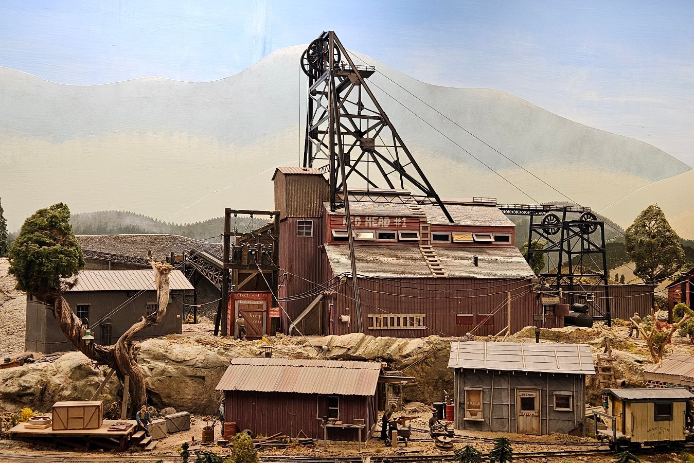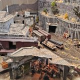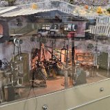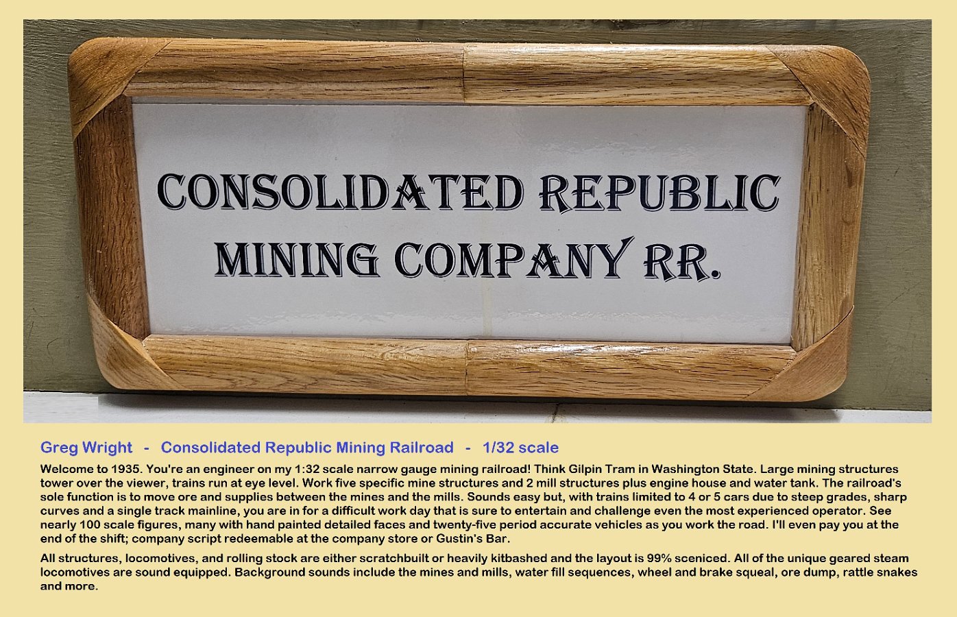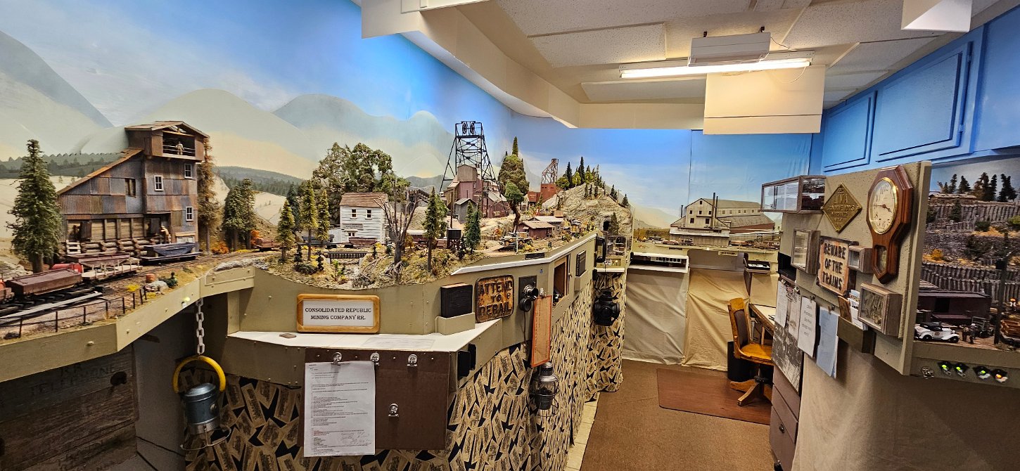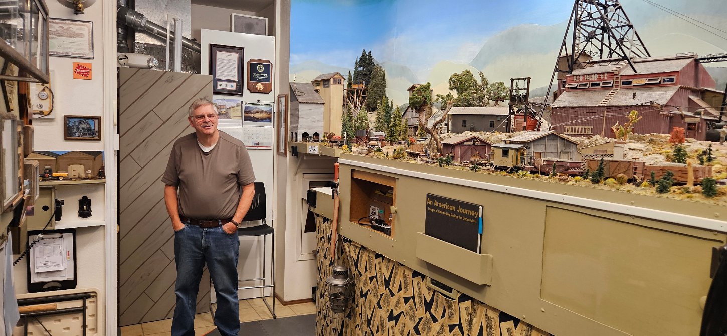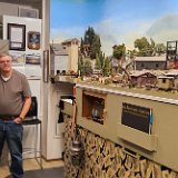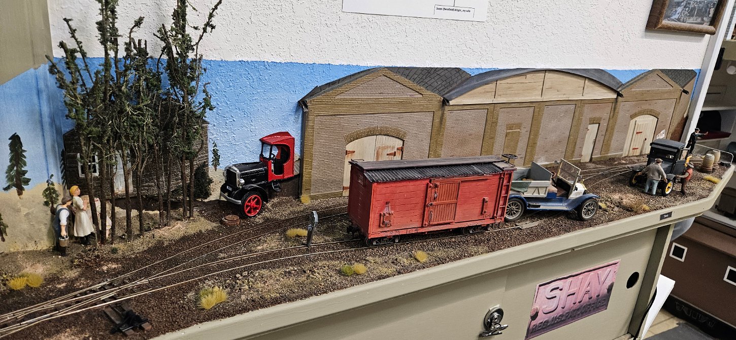 In the morning of Day 4, we visited Greg Wright's 1/32n20 model railroad, southwest of Tacoma. Greg scratch builds the buildings and rolling stock in 1/32 scale (this is larger than O scale, smaller than G scale). He freelances a 20inch gauge mining railway, as 20 inches scales out to HO / On30 gauge track, allowing him to use HO and On30 wheelsets and drives, and at times, some track and switches when not hand laid. He also gave us a tour of see his 'garden railroad'. All buildings and trains were put away in storage for the year, so we saw the railway.